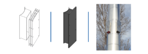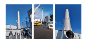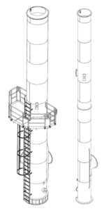 - Tours de ventilation équipée d’un système de décrochage automatique : cette configuration permet de poser la cheminée sans nacelle en tête. En effet, une nacelle à cette hauteur représente un coût significatif pour une opération de quelques minutes.